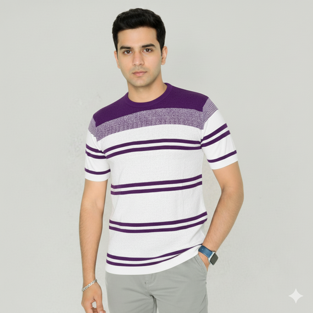 Prestige Knit Cotton T-Shirt – Purple 💜☀️